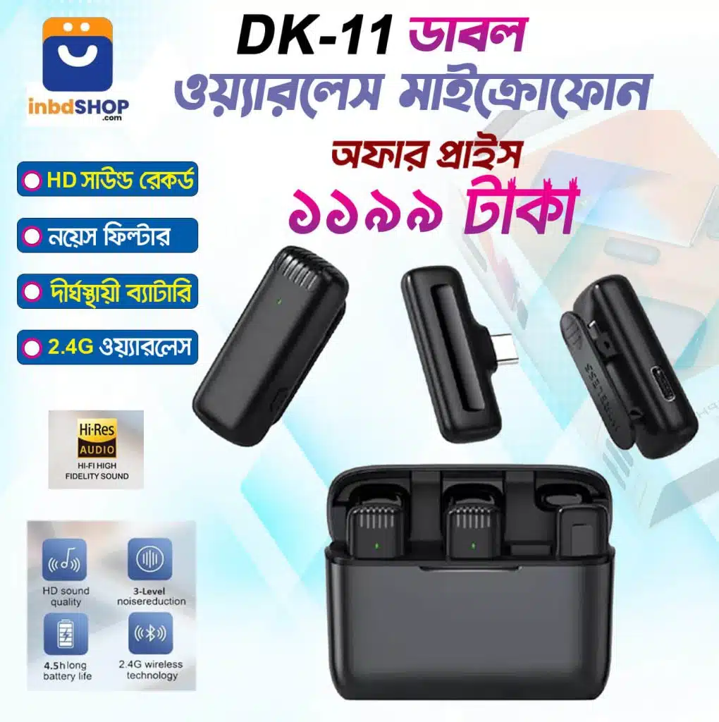DK-11 Dual Wireless Microphone with Charging Case